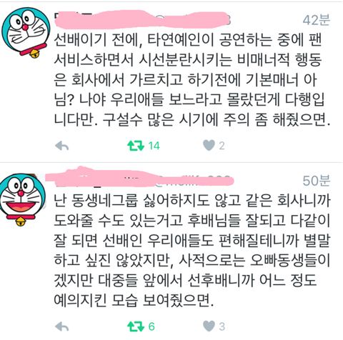 팬서비스해서 시선분산됐다는 일본 선배그룹팬이