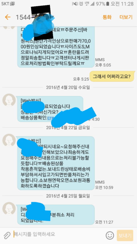 이미 옷에 대한 애정이 없어진 지라 환불을 요구하였습니다.