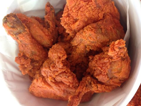 핫소스 안 뿌려 먹을 때는 바삭해서 후라이드에 약간 고추 첨가한 느낌인데