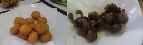 이거는 추가로 시켜먹은 치즈감자볼 하고 서비스로 주신 닭똥집 튀김!! ㅎㅎ