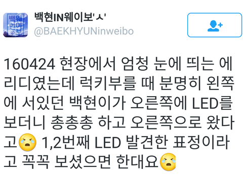 백현이가 백현 LED발견했을 때 표정 ㅋ