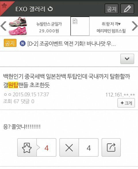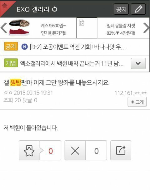 작년에도 백현팬인 아이피 털리고 잠시 잠잠하더니 다시 갤온냐거리면서 돌아온거야