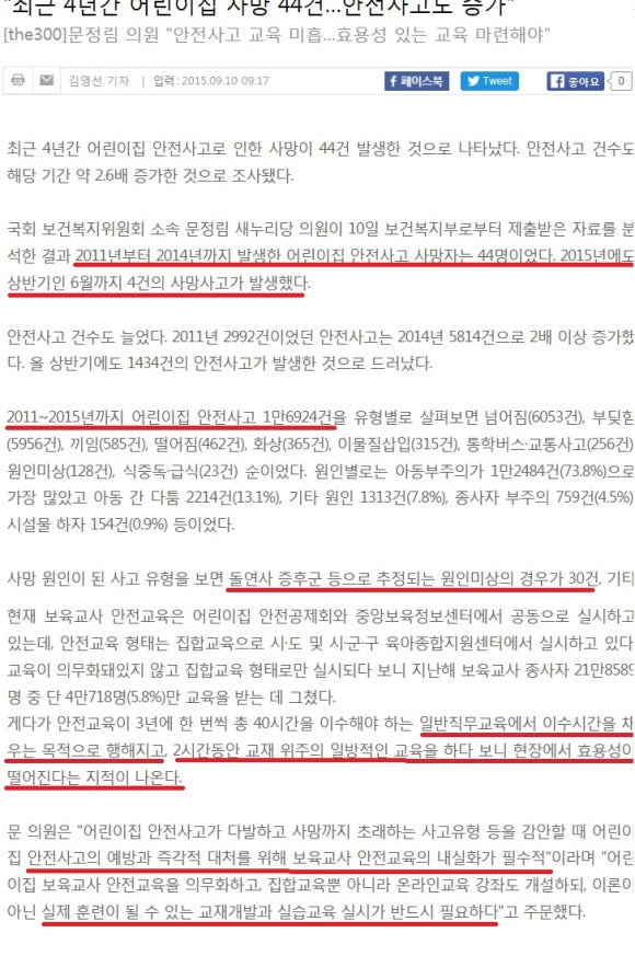 전국에 있는 모든 어린이집에서 발생된 사망사고 중