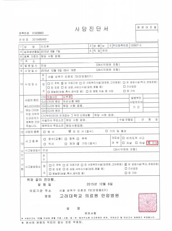 결국 최종 사망진단은
