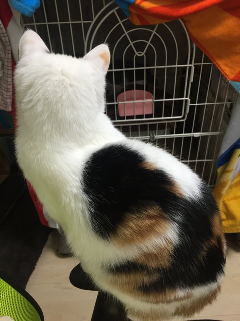 나나코와 모모카의 모습이 안 보이게 케이지를 이불로 덮어놨는데도 역시나 냄새때문인지 방에도 못 들어오더라고요.