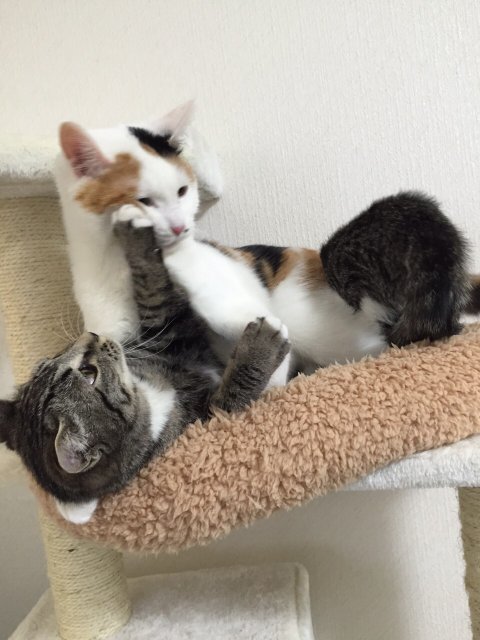 케이지 너머로 밥을 같이 먹게하면 서로에 대한 좋은 추억이 생겨서 합사에 성공할 확률이 커진다고 하더라고요.