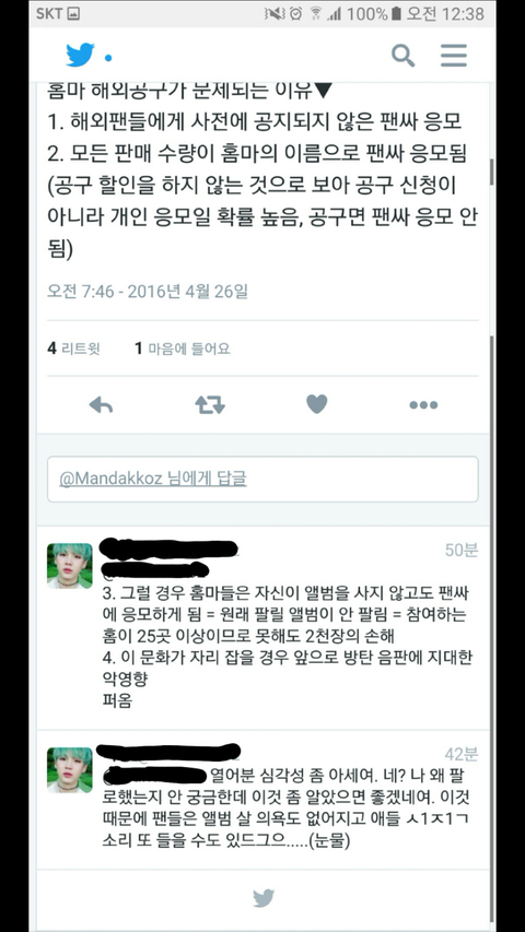 그리고 지금 공구 진행하는거 흥1나라에서 사면 할인된 가격으로 사는데 홈마들은 정가로 진행한다는거.....^^ 아무것도 모르는 외국 팬은 걍 사는거지 편하니까