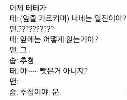 ㅋㅋㅋㅋㅋㅋㅋㅋㅋㄱㄲ맨날앞줄에있으니까 태형이가 이상하게 생각했나보지 뭐