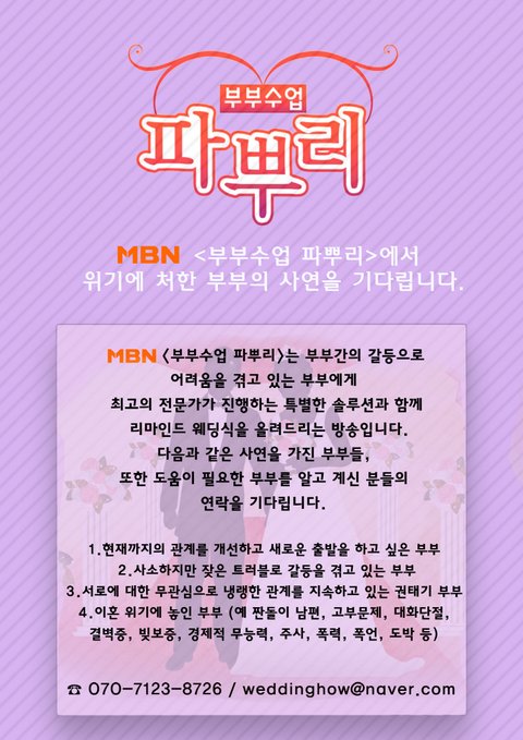 MBN 부부수업 파뿌리에서 부부분들의 문제를 해결해 드립니다