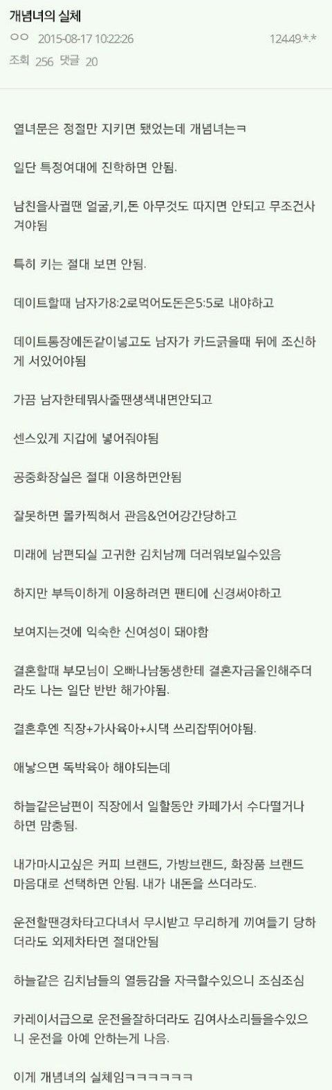 저런개념녀 되느니 김치녀 된다