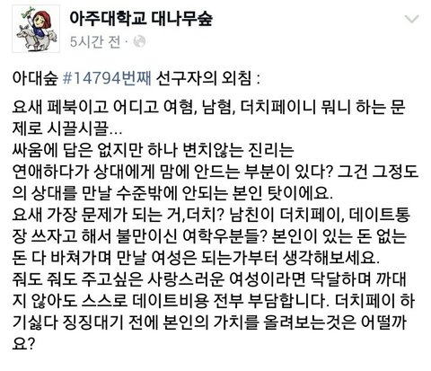 더치페이 = 내가 더치할 정도의 가치밖에 안 되는 여자