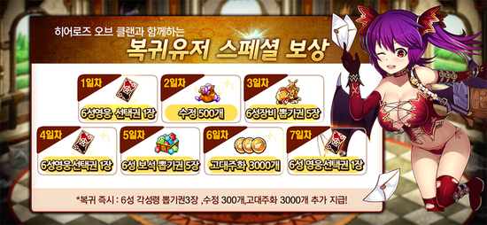 현재 신규/복귀 유저에게 많은 혜택을 지원하는 이벤트가 진행중입니다.