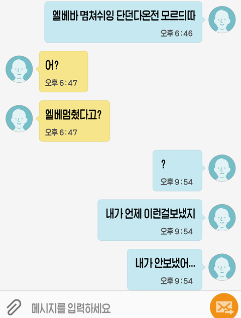 제가 친구한테 "엘베바 몀쳐쉬잉 단던다온전 모르듸따"