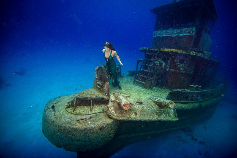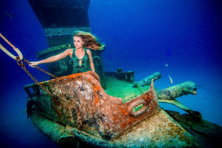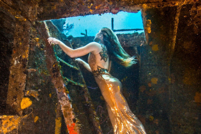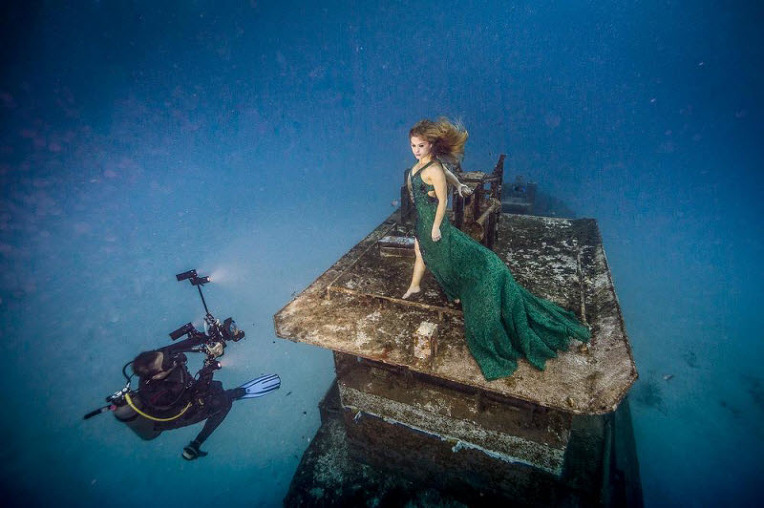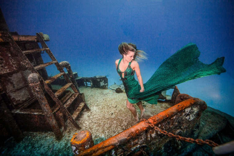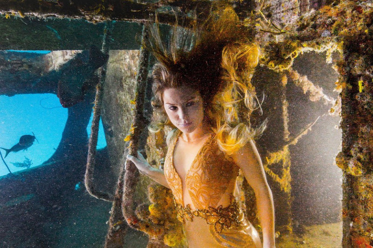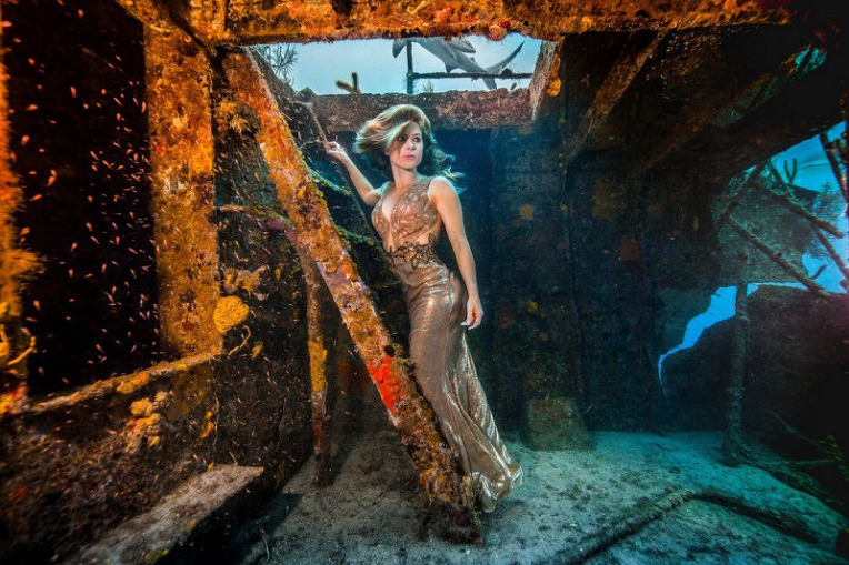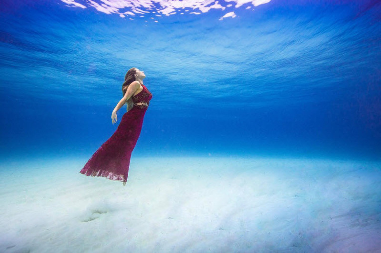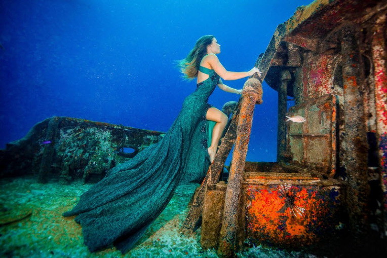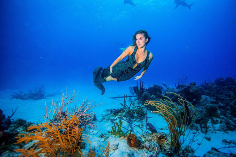 산소탱크 같은 잠수 장비 없이 아름다운 드레스 차림으로 바닷속에 들어간 여성은 브라질 모델이자 동물 보호 운동가로 활동 중인