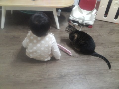 첨에 아기가 태어나서 집에 와서 몇달간은 고양이들이