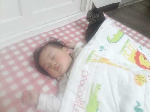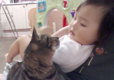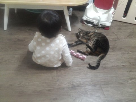 애가 저라면서 슬슬 고양이도 쓰담쓰담하는걸 배워서 만져주고하다보니 요즘은 옆에서 잘 있어요.