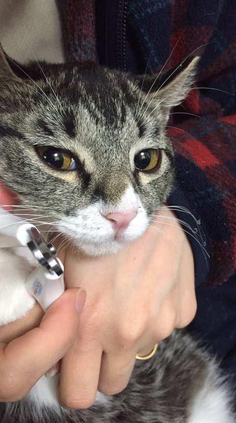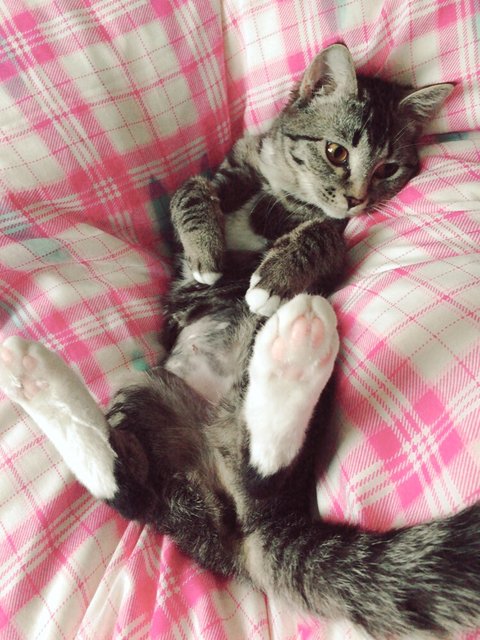 이 사진은 중성화 수술한 다음 날 찍어서 배에 털이 없네요.