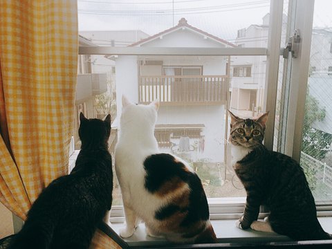 환기하려고 창문을 열면 이렇게 셋이 쭈르르 몰려와 앉아서 바깥세상 구경을 해요.