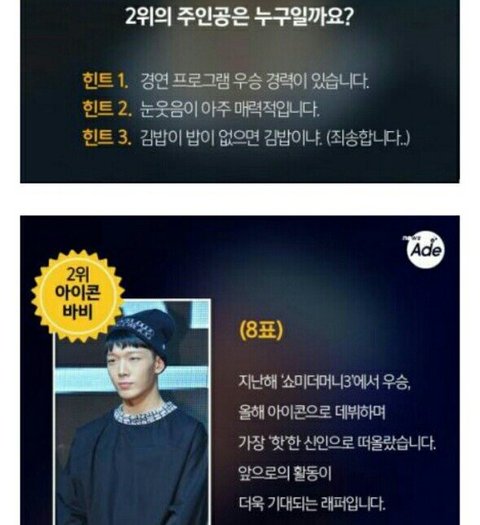 바비는 아이콘으로 데뷔한 후, 전문가들이 투표한 실력있는 아이돌래퍼 순위에서 2위를 함