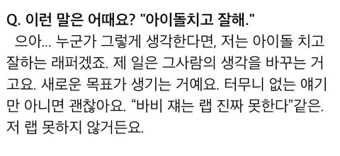 이건 쇼미우승후에 진행한 GQ인터뷰에서 바비가 답한 말