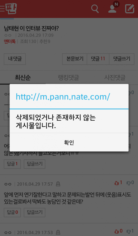 게시글 삭제되기 바로 전 댓글이 어떻게 와이지라이프까지 갔냐였어