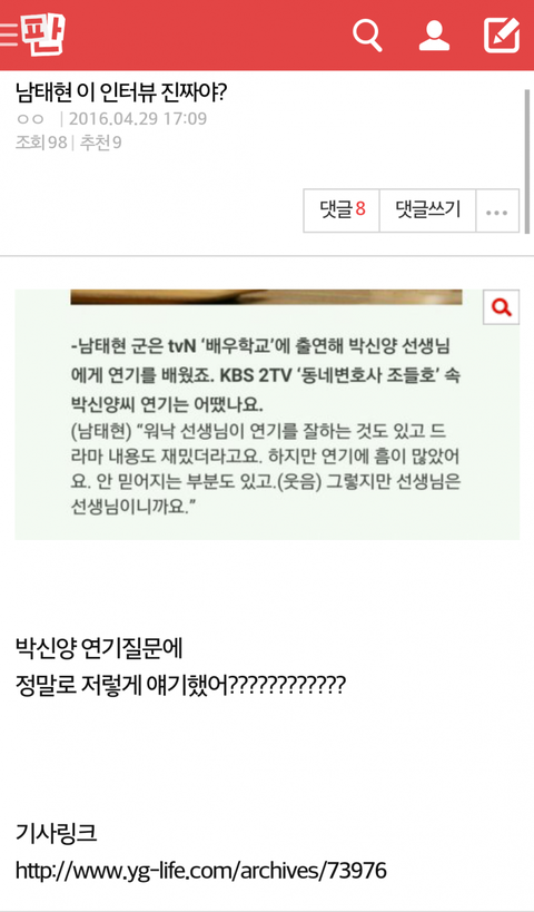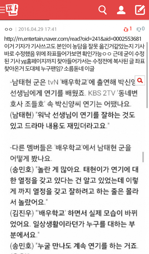 태현이 인터뷰 까는 글이었는데