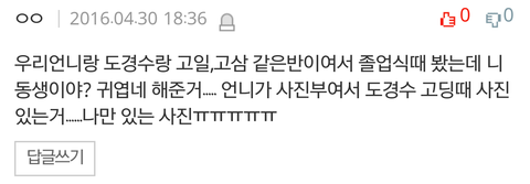 도경수 동창이 젤부러워 ㅅㅂ귀엽다고해주고