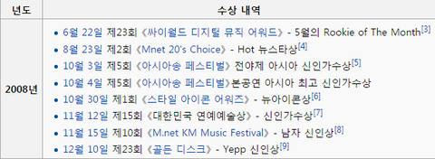 2008년도 데뷔해 신인상 수상횟수만 무려 6관왕. 아이돌 역사상 가장 많은 신인상 수상
