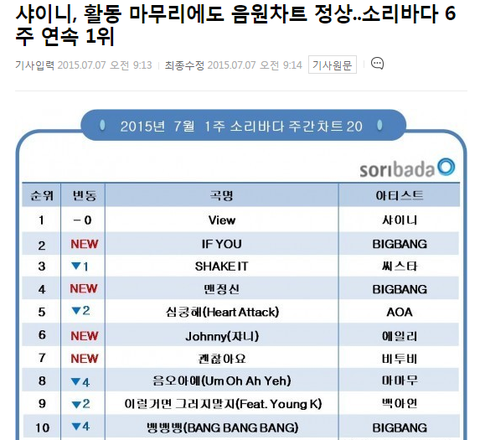 소리바다에서는 6주 연속 주간 1위