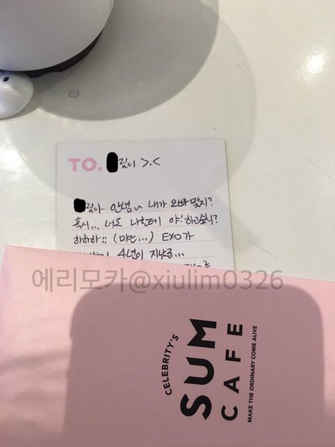 ps.중간에 가린 건 개인적인 내용이래. 세젤부ㅠㅠ