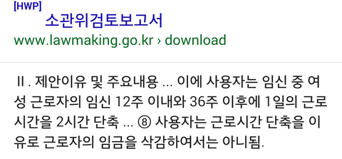 임신근로단축 : 이거 그냥 지속적인 것도 아니고 병원 자주 가야 하는 임신 초기랑 말기에 2시간 시간 빼주는 거잖아ㅡㅡ 회사에서 안 보내 주니까
