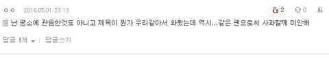최소 그런 글 올라올 때 니네는 베플이 '우리 아니거든' 이건데 우리는 베플이 '죄송해요ㅠ 저 홈마 우리도 싫어해요ㅠ' 이거잖,, 차이를 알겠니?