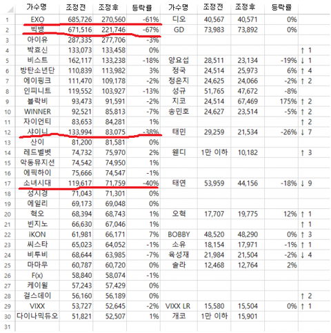 결론: 실질적으로 사재기니 뭐니 하면서 까였던 아이돌들은 차이 전혀 없음