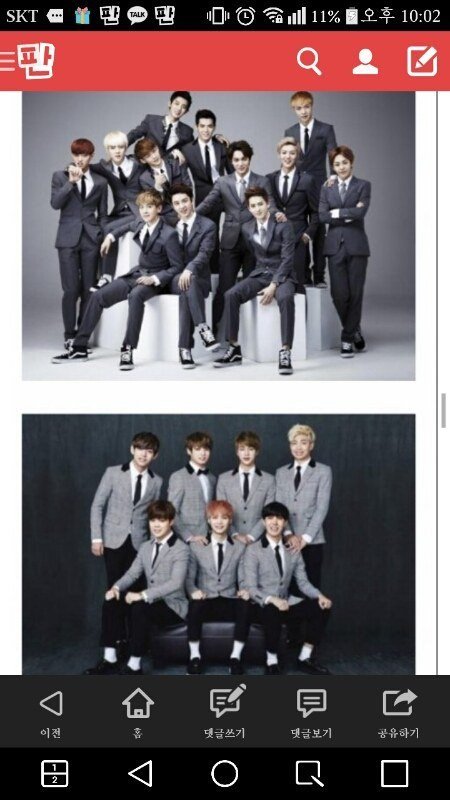 으르렁이 나오기 전부터 방탄소년단이 위의 사진과같이 매주년마다 찍어왔던 기념사진으로 2주년이었던 날 찍은 사진임. -> 표절이 아님.