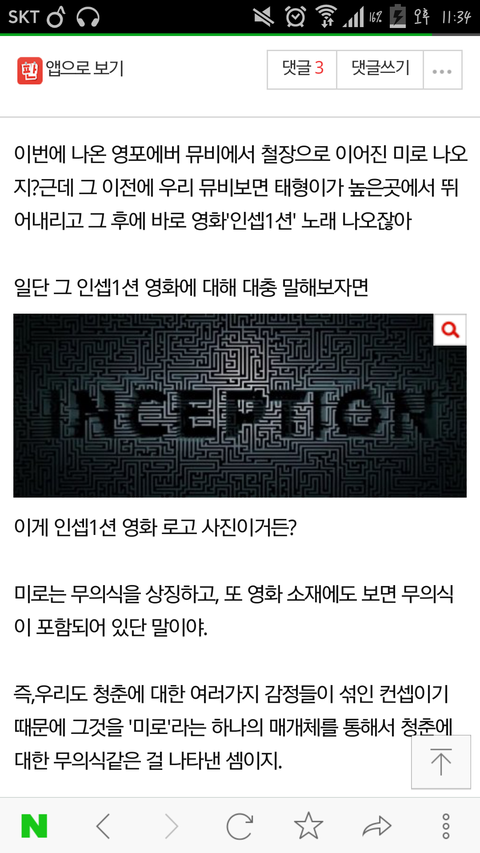 방탄소년단의 화양연화는 인셉션을 모티브로 함. 인셉션에서 다룬 내용은 꿈을 설계할 수 있고, 꿈인지 현실인지 구별하지 못하게 되며 꿈에서 깨기 위해선 꿈 속에서 죽어야 함. 이런 장면들은 런 뮤비에서 흔히 볼 수 있음. 그리고 미로라는 자체는 인셉션에서도 쓰였었고.