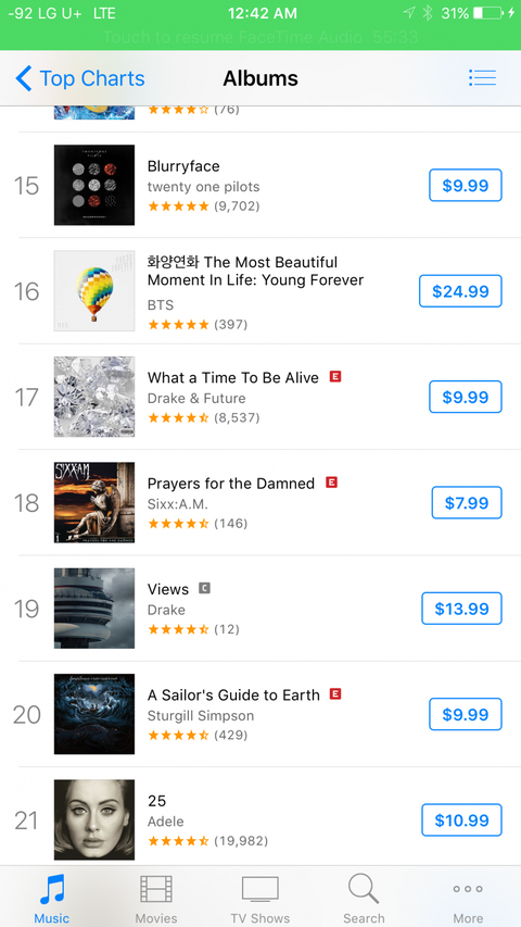 미국 앨범차트에서 16위라 타싸 미국음악 ㄱㄹㄹ에서도 신기하다고 언급됐고