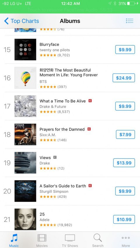 미국음악차트 16위야 이때다 싶어서 좀까지말고 생각좀하고말래