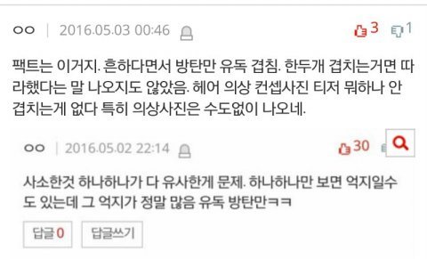 방탄만 유독겹침