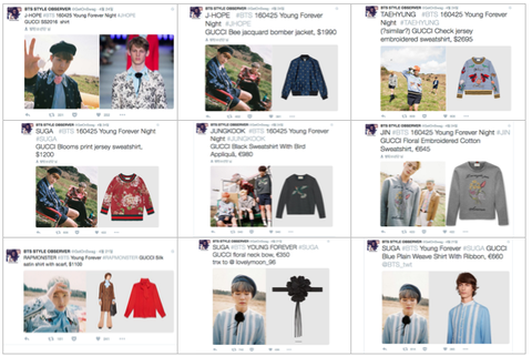이번 컨셉 포토에서 방탄이 입은 옷은 대부분 구찌 컬렉션에 나온 옷들