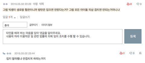 빅뱅 팬 한명은 빅뱅이 생로랑 협찬이라고 겹치면 안 된다고 주장했는데 그럼 애초에 타가수나 타연예인이 협찬하는 브랜드는 절대 겹치면 안된다는 말인데 아이돌 옷 대부분이 협찬인 연예계에서 맞지 않는 논리임