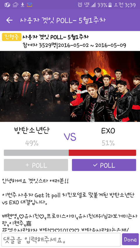 겟잇스타-poll 드가서 투표