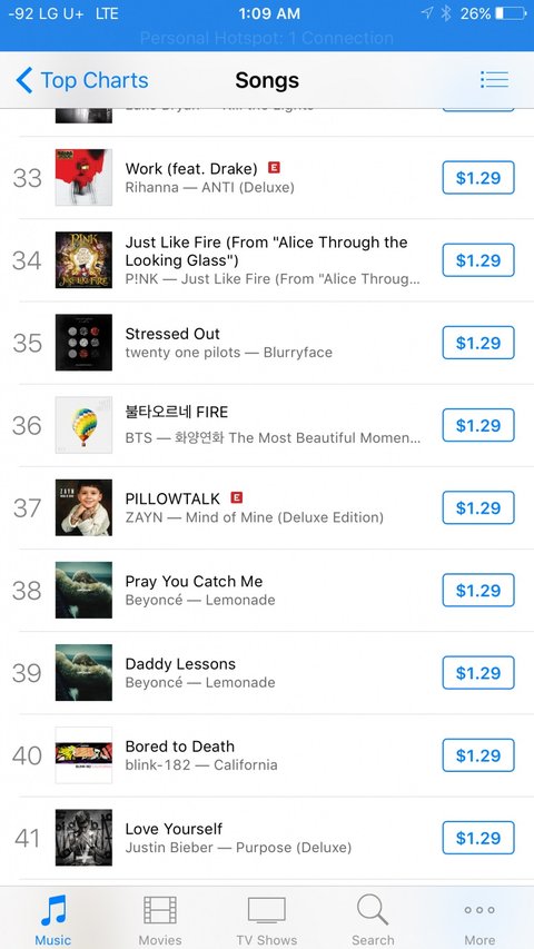 미국 이이튠즈 음원 순위 둥인가?