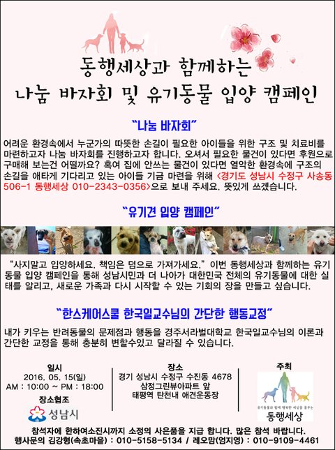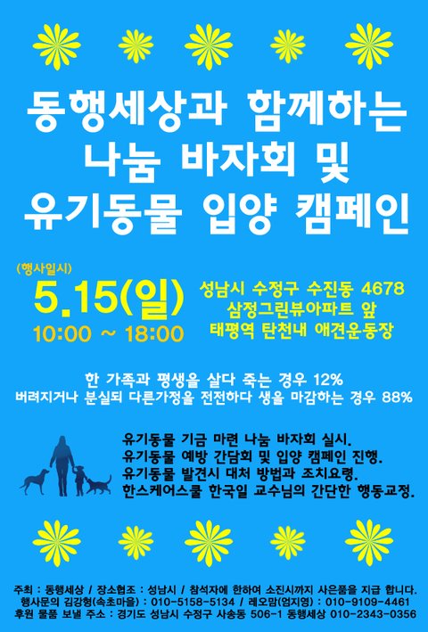 금번 저희 동행세상에서 나눔바자회 및 입양캠페인을 진행하고자 합니다.