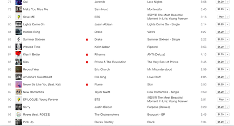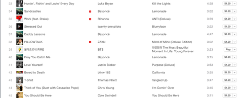 와 지금 미국튠즈차트 100위 안에 우리 신곡 세개 다 들음...