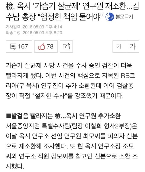 2-1.검찰, 옥시 가습기 살균제 연구원 재소환