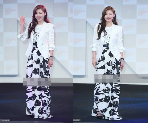 이날 롱스커트에 피에르 발망 화이트 자켓입고 블랙&화이트로 꾸몄는데