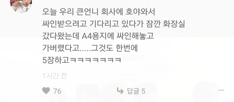 피키댓글에서본건데 오늘자 호야일화