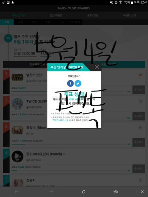 투표는 아까 해놓은거 지금올리는거라 시간 좀 안맞아!