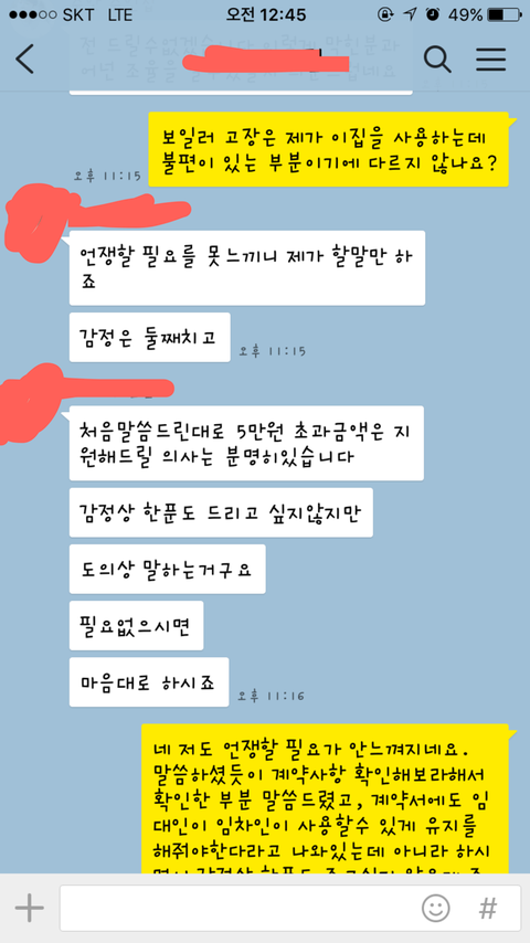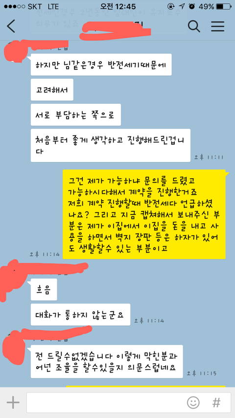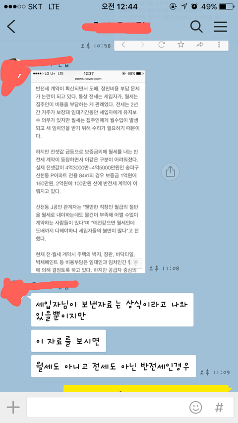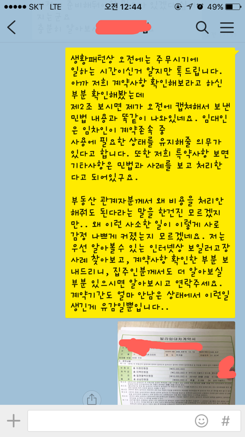 라고 되있다 말해도, 장판,도배에 관한 부분 캡쳐해서 보내는 등.. 전혀 무조건 내가 말이 안통하는 사람이라고 하네요