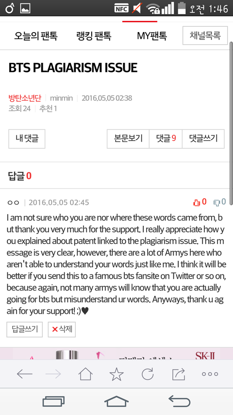 본론부터 말하자면 아까 영어로 bts plagiarism issue 글 뜬 거 나쁜 말 아니야!!!!!!!!